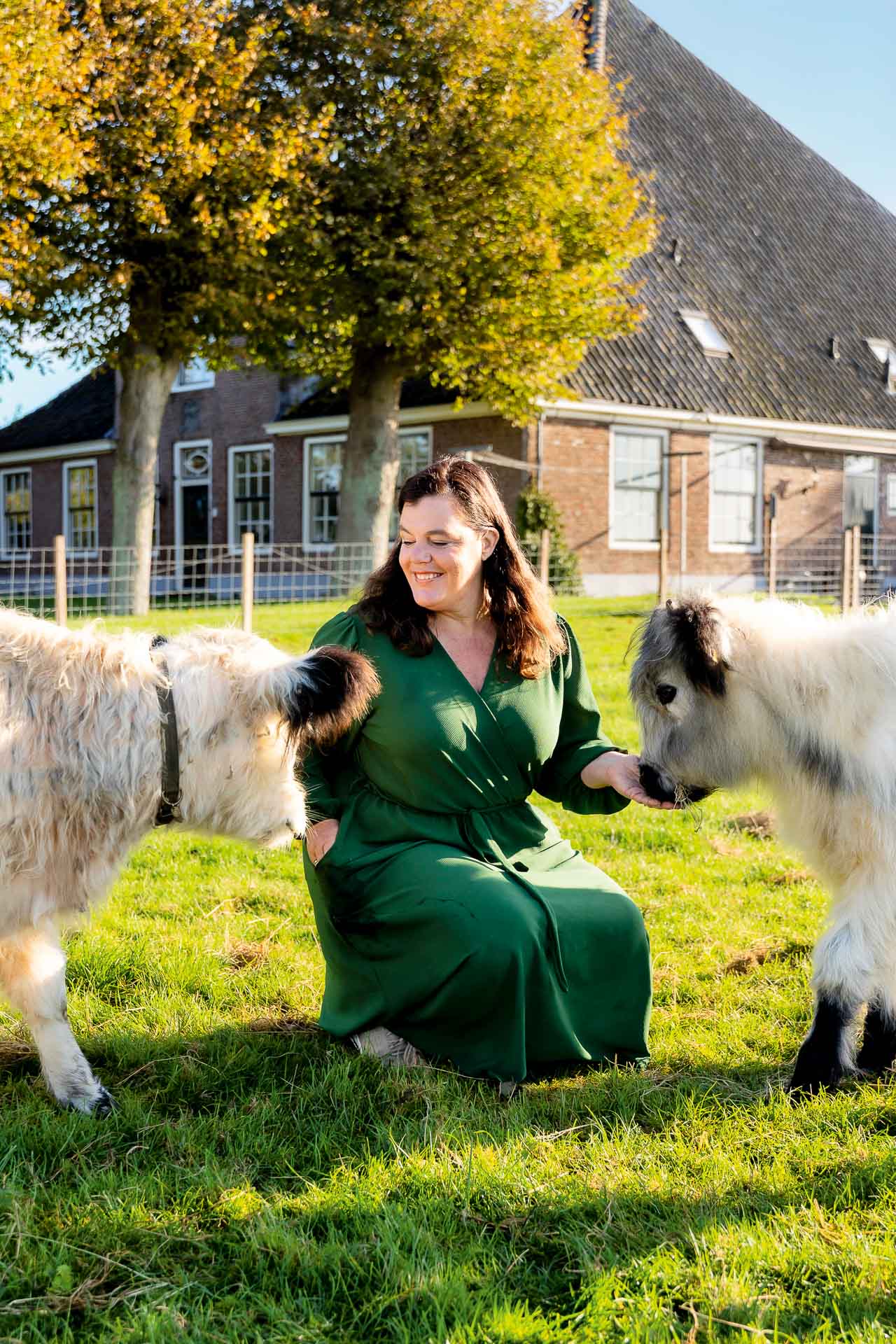 Mini-koetjes in de Beemster. Al van gehoord? Nou, zo’n 14.000 Instagram-volgers en meer dan 70.000 TikTokkers in ieder geval wel. De ongelooflijk aaibare en vertederende kleinformaat-herkauwers zijn een hit op social media. Enthousiaste fans melden zich aan voor een ‘feedand-greet’ op Westdijk 5 in Noordbeemster, waar naast de mini- koetjes ook nog eens zes Walliser-schapen staan, al even aaibaar en nieuwsgierig. Het begon allemaal op een steenworp afstand van de huidige locatie: Westdijk 39, waar Annemarieke van Felius-Loderus en haar man Peter tot voor kort woonden. “Een mooie stolpboerderij met een boeiende historie”, zegt Annemarieke. “Daar hebben we op een gegeven moment ook wat zwartneusschaapjes bij genomen. Omdat het gewoon zo ontzettend leuk is.”