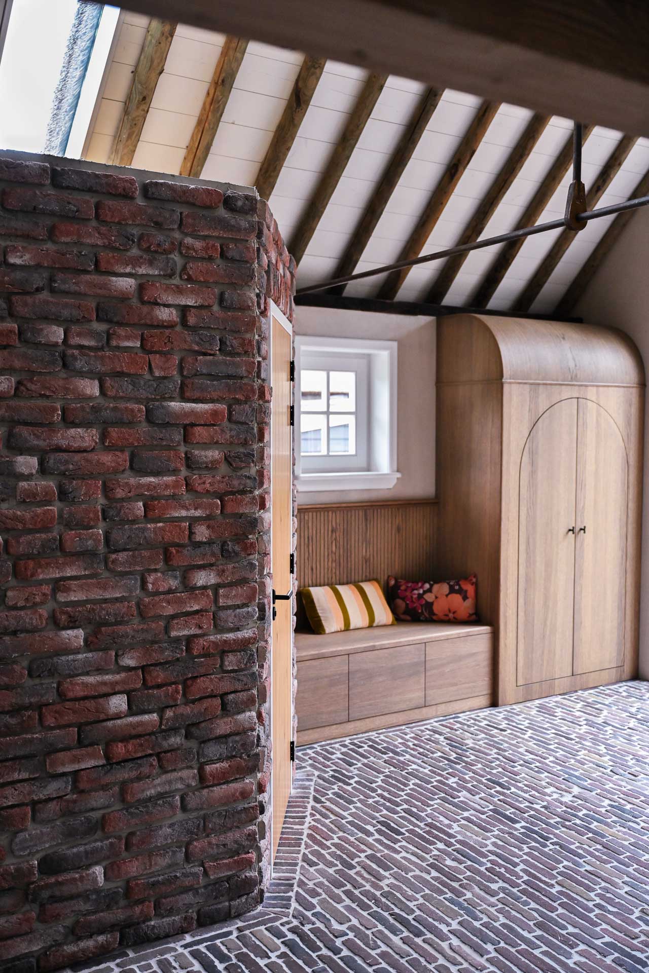 Denise en haar gezin wonen op een middeleeuwse terp, net buiten Schagen. Wat ooit niet meer was dan een vervallen muurtje op een fundering, groeide in de jaren zeventig uit tot een liefdevol herbouwde stolpboerderij. “De stolp is destijds volledig opgetrokken uit historische materialen”, begint Denise te vertellen. “De eerste bewoner heeft het met zoveel zorg opgebouwd, dat voel je gewoon. Ons uitgangspunt was om dat karakter te behouden én het huis tegelijkertijd toekomstbestendig te maken.”
